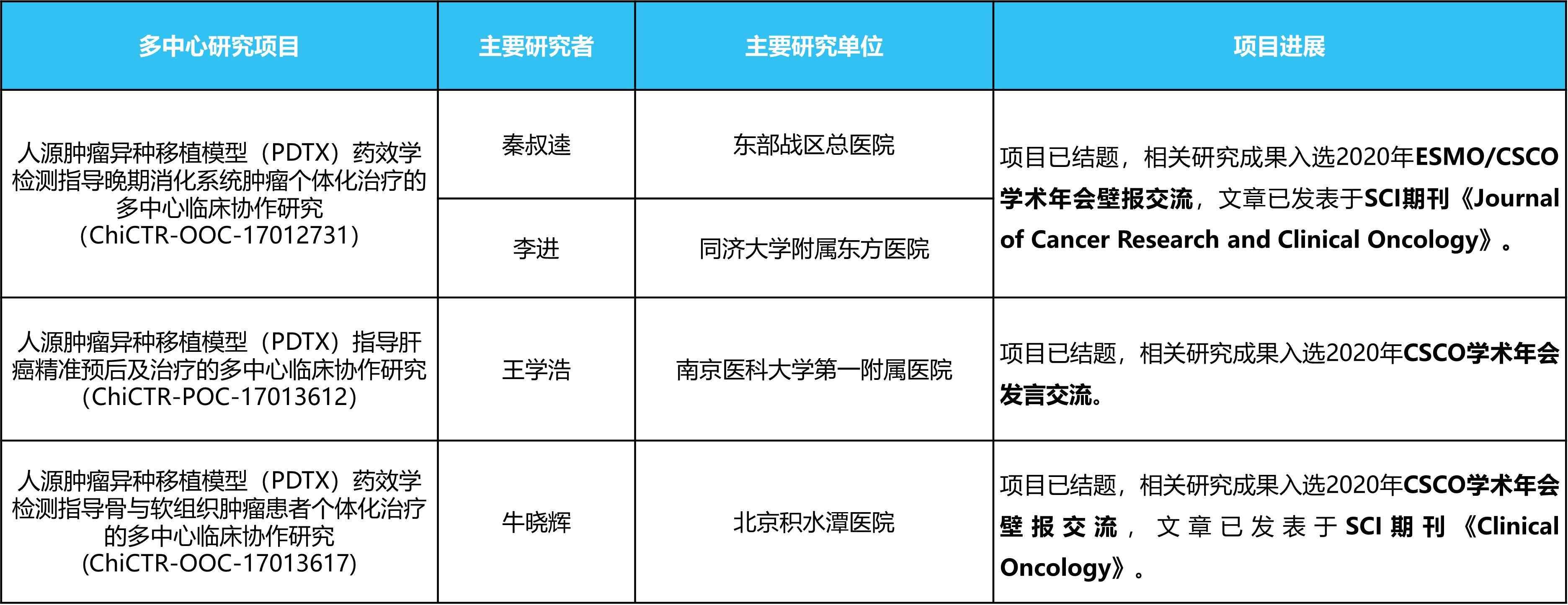 一、人源腫瘤異種移植模型(PDTX)藥效學檢測指導晚期消化系統(tǒng)腫瘤個體化治療的多中心臨床協(xié)作研究